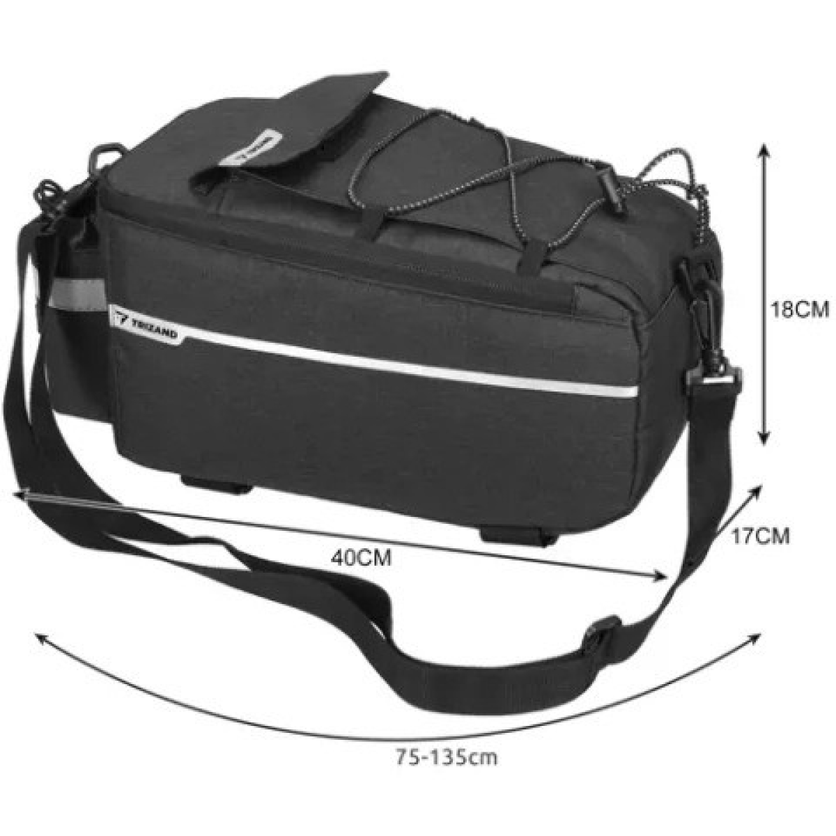 Система кріплення на липучках дозволяє швидко та без зусиль встановити або зняти сумку з багажника вашого велосипеда. Регульований плечовий ремінь забезпечує комфортне перенесення сумки в руках або на плечі.