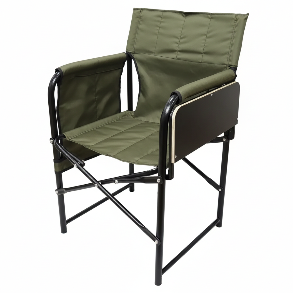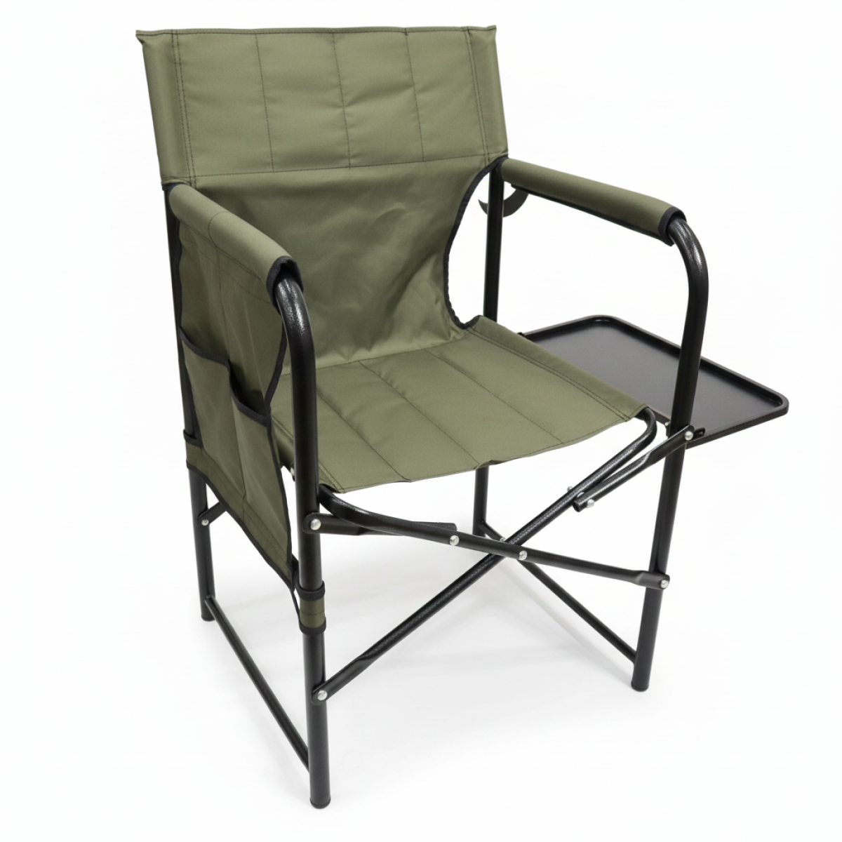 Складаний стілець Комфорт Олива з твердою полицею надійне крісло для риболовлі та кемпінгу
