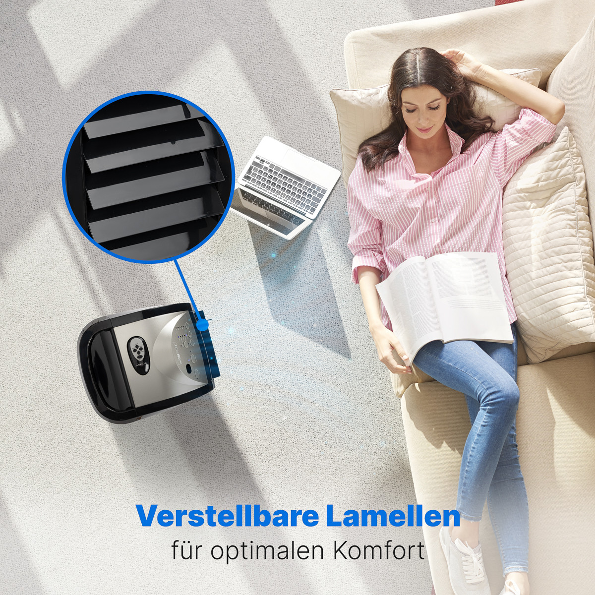 Створіть ідеальний мікроклімат у вашому домі чи офісі з мобільним акліматизатором CLATRONIC LK 3742. Цей багатофункціональний пристрій поєднує в собі функції охолоджувача, зволожувача та очищувача повітря (3в1), забезпечуючи комфорт та здорову атмосферу в приміщеннях площею до 20 м². Охолодження відбувається за принципом випаровування води: гаряче повітря проходить через спеціальні картриджі, насичені водою, віддає їй тепло і повертається в приміщення вже охолодженим. Це екологічний та енергоефективний спосіб знизити температуру та одночасно підвищити вологість. Обирайте оптимальний режим роботи завдяки 3 налаштуванням швидкості повітряного потоку.