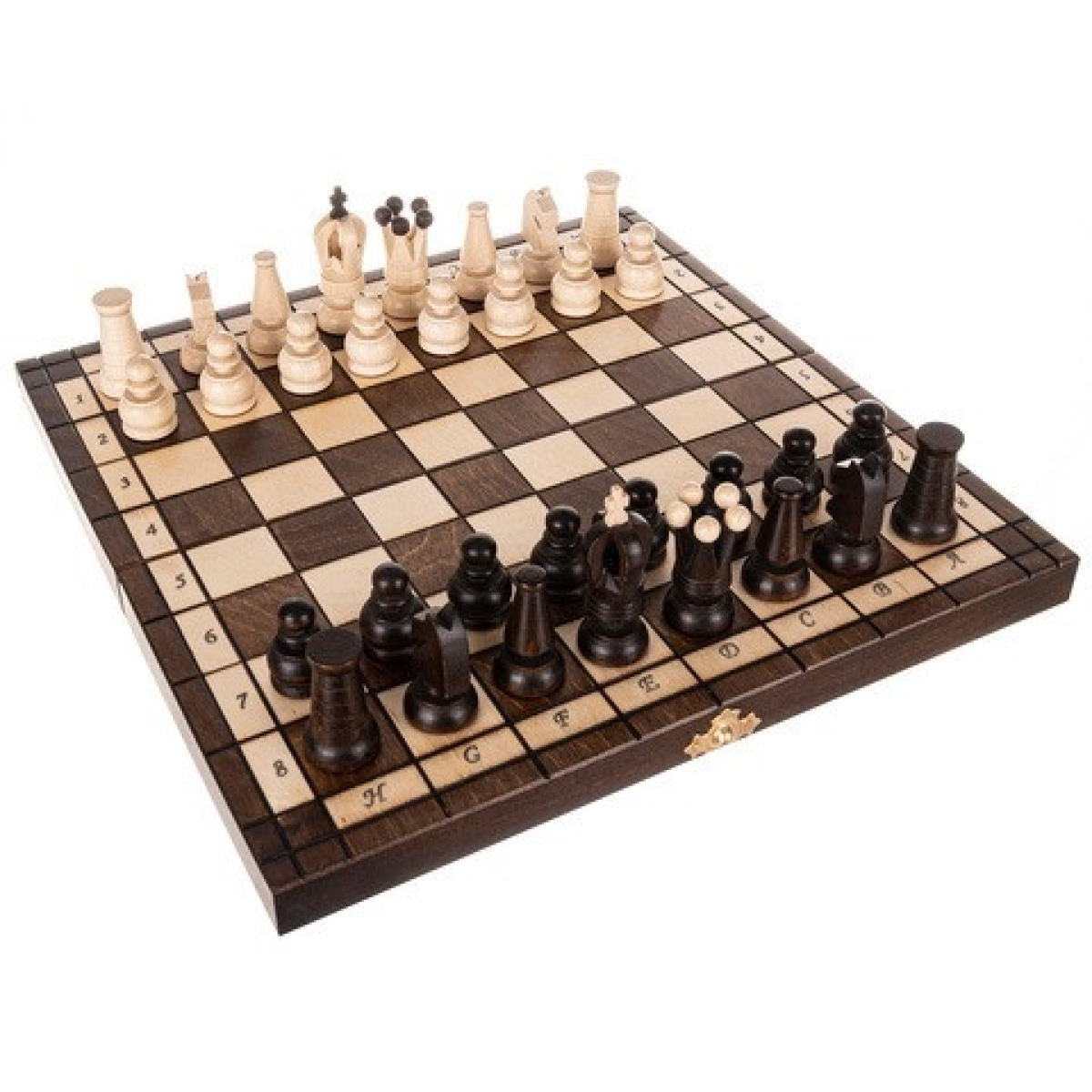 Шахи дерев“яні грабові класичні з флокованими вставками для фігур в замиканій шахівниці