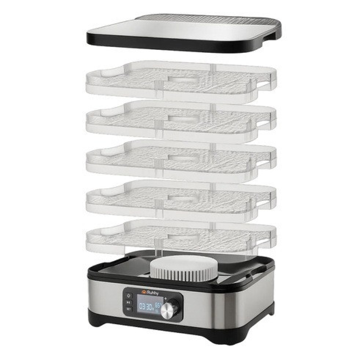 - ТОЧНИЙ КОНТРОЛЬ СУШІННЯ: Має регульовану температуру від 35 до 70°C для точного налаштування під кожен продукт. Програматор на 72 години дозволяє працювати до трьох діб без нагляду.