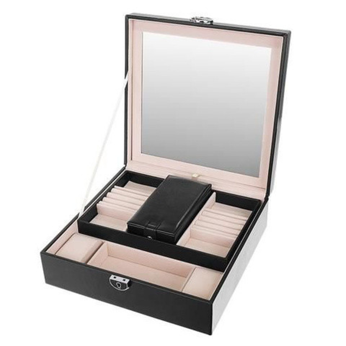 Шкатулка складається з кількох рівнів, у тому числі знімної дорожньої касети, яка стане незамінною у поїздках. Компактний кейс дозволить завжди мати улюблені прикраси під рукою, адже він легко поміщається в сумочку або косметичку.