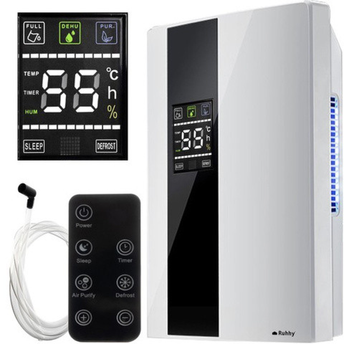 Осушувач має чіткий ЖК-дисплей з підсвічуванням, що відображає рівень вологості, залишковий час роботи та інші параметри. Таймер на 1-24 години дозволяє налаштувати пристрій під індивідуальні потреби, а функції сну та розморожування роблять його ще зручнішим у використанні. Модель ідеально підходить для використання в приміщеннях площею до 30 м², таких як будинки, квартири чи офіси.