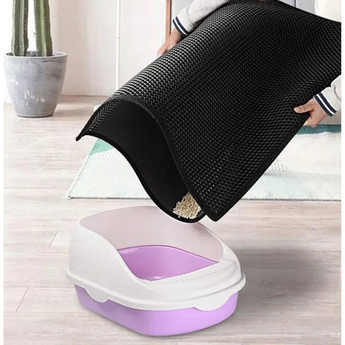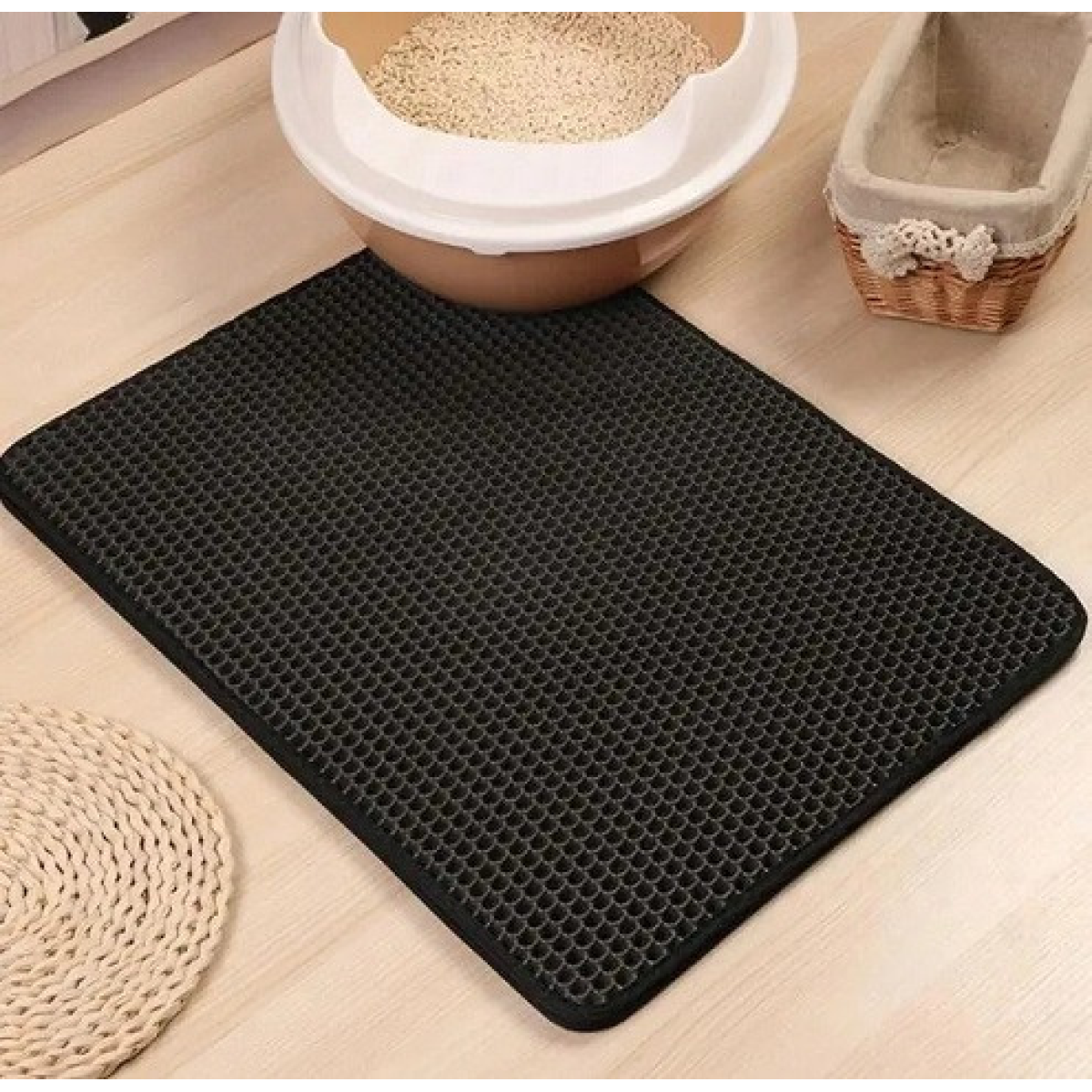 Власники котів знають, як важко іноді буває підтримувати чистоту навколо котячого лотка. Наш двошаровий килимок для котячого лотка стане вашим незамінним помічником у боротьбі з рознесеним наповнювачем! Його спеціальна конструкція ефективно затримує гранули, що прилипають до лапок вашого улюбленця після відвідування туалету, зберігаючи вашу підлогу чистою та охайною.
