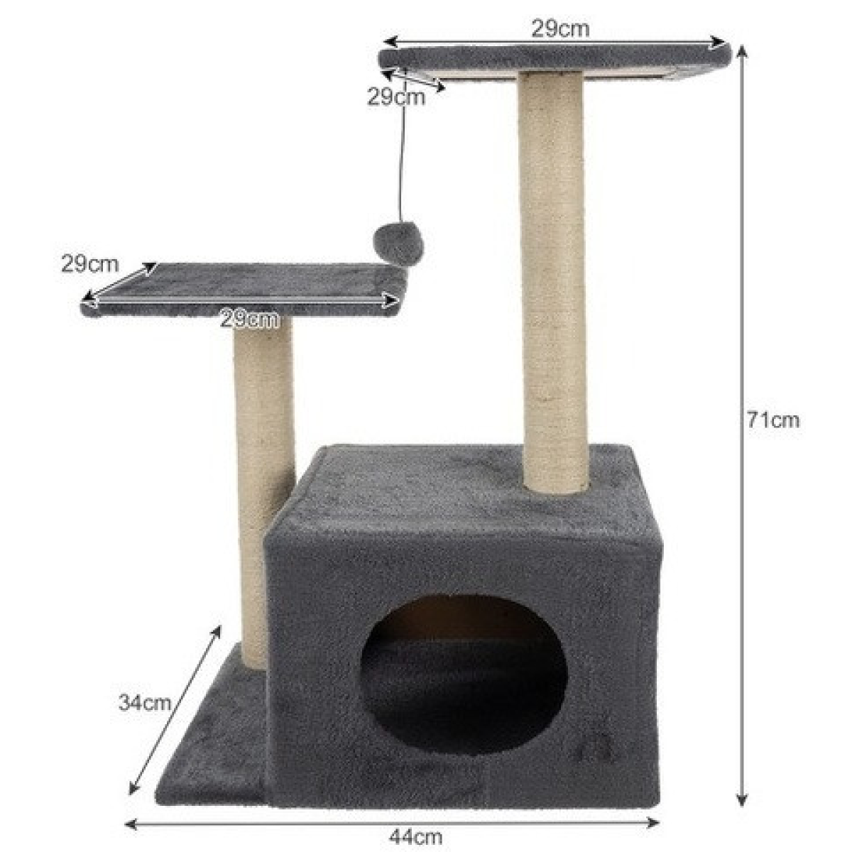 • МІЦНА ТА НАДІЙНА КОНСТРУКЦІЯ: Виготовлена з якісних матеріалів (МДФ, паперова трубка, сизалева мотузка) з міцною основою (розміри 71 x 44 x 34 см), що забезпечує стійкість та довговічність.