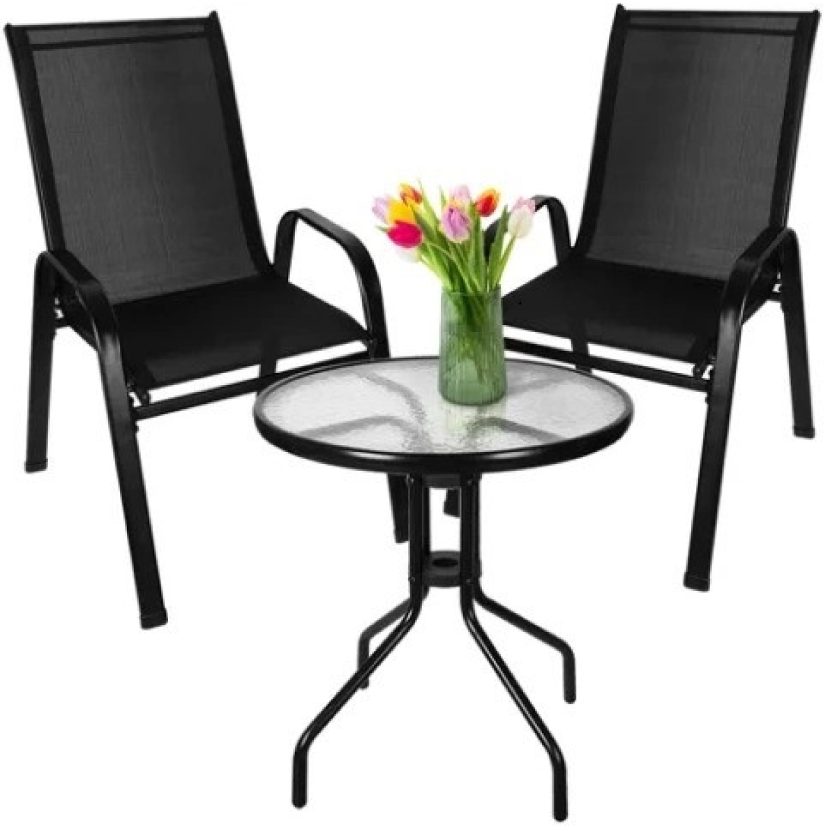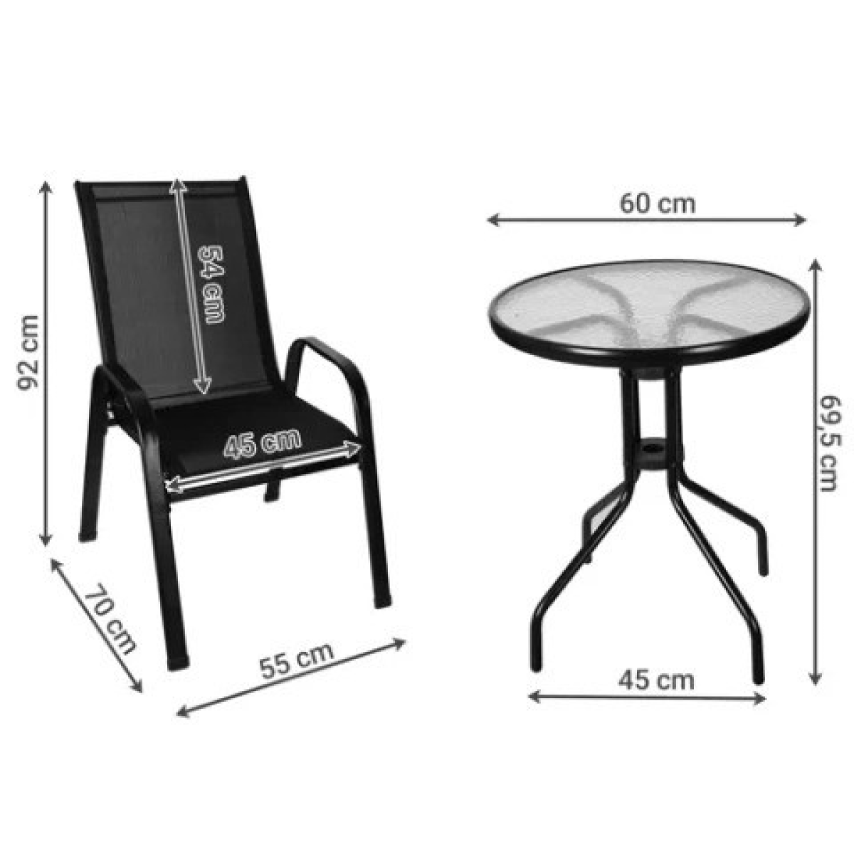 Насолоджуйтесь відпочинком на свіжому повітрі з нашим елегантним та практичним комплектом садових меблів на 2 персони. Цей набір, що складається зі столу та двох стільців, стане чудовим доповненням вашого балкона, тераси або невеликого саду. Виготовлений з високоякісних матеріалів, він поєднує в собі довговічність, стиль та комфорт.