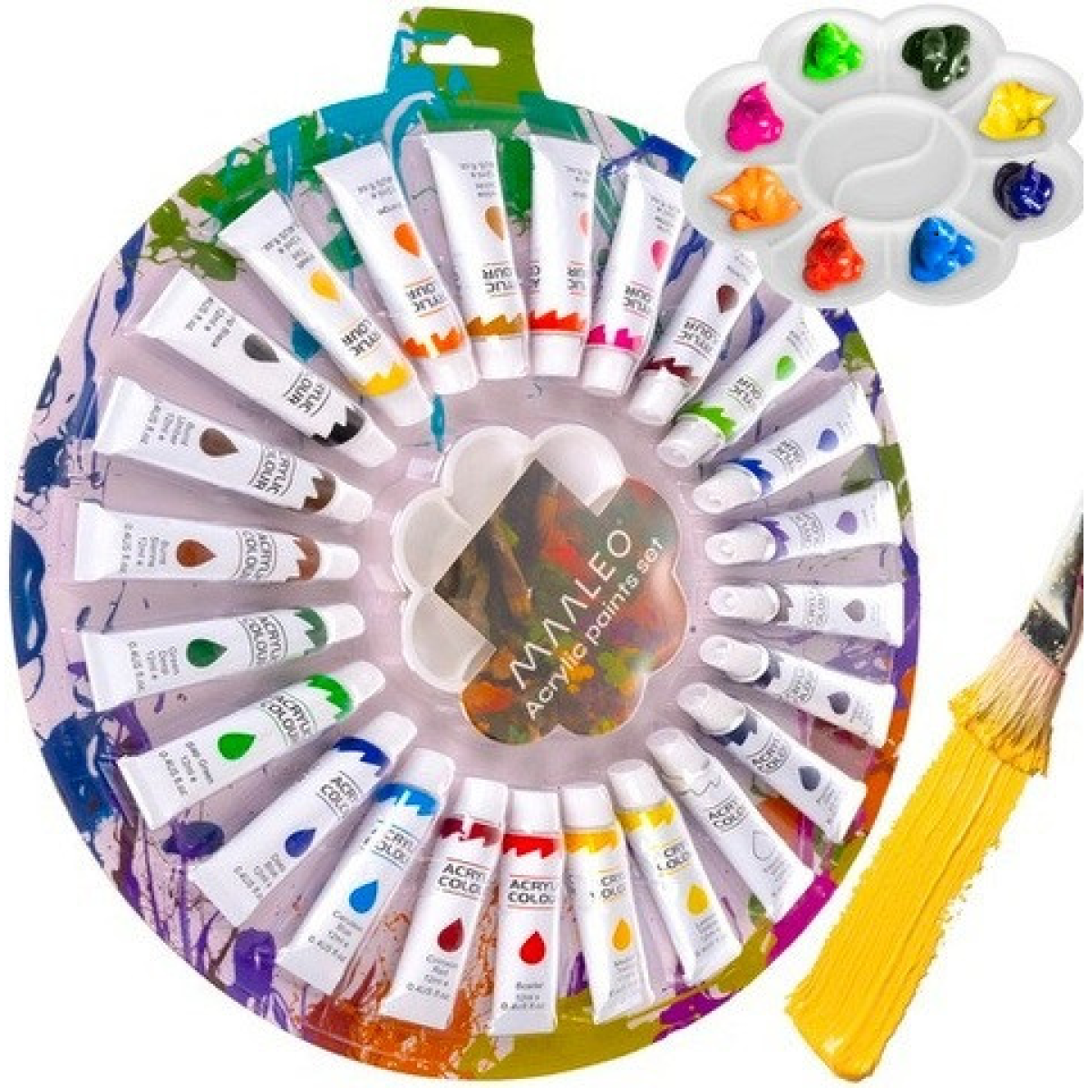 • Комплект: 24 фарби, палітра, барвиста упаковка