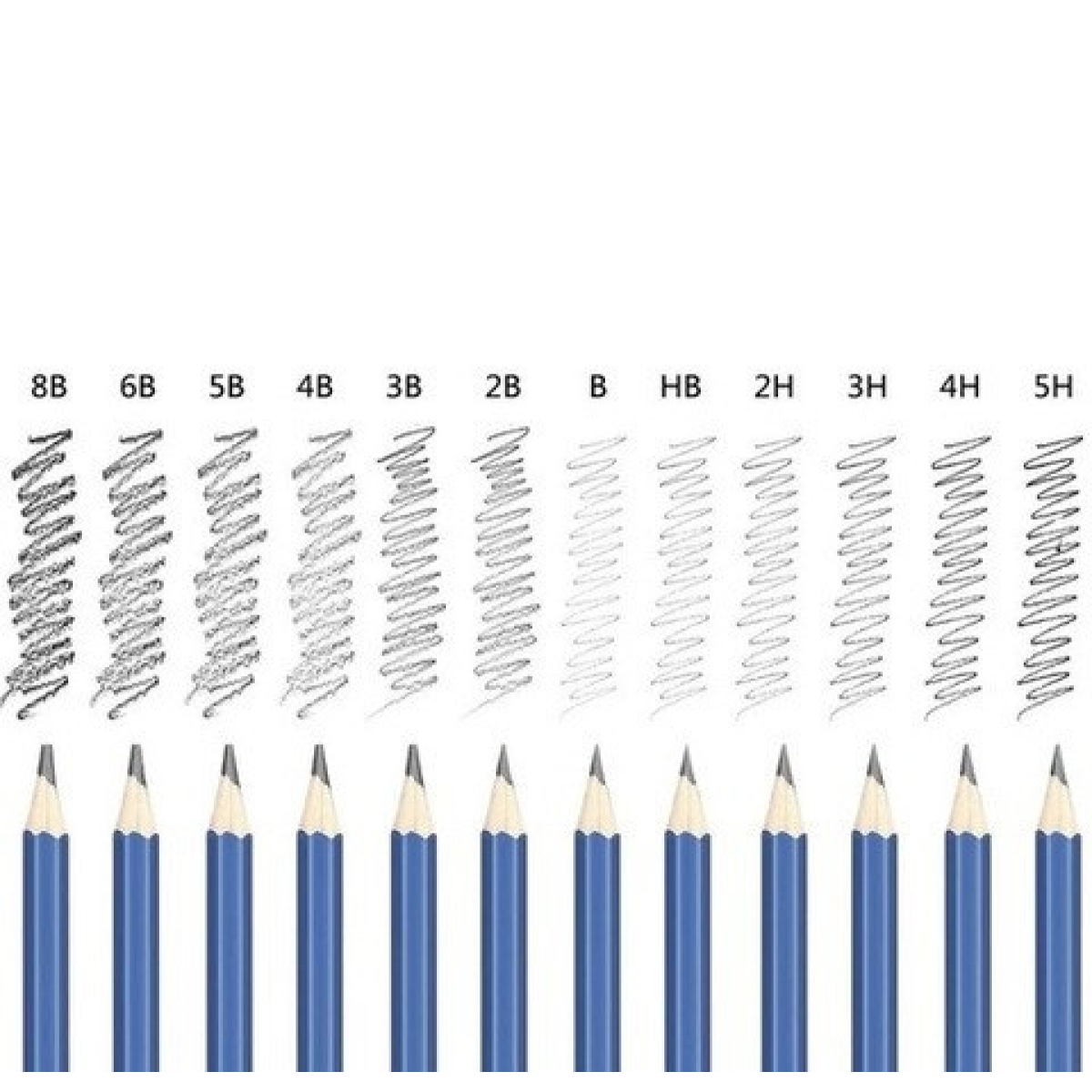 - 12 олівців для малювання (2H/3H/4H/5H/HB/B/B2/B3/B4/B5/B6/B8)