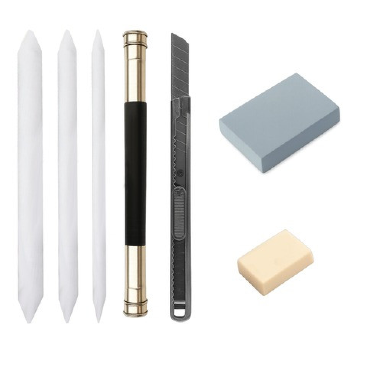 • 18 олівців для малювання (2H / HB / B / B2 / B3 / B4 / B5 / B6 / B8)