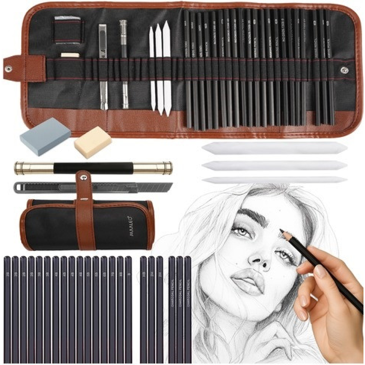 • Підходить для початківців: Цей набір для малювання для дітей та дорослих містить усі необхідні інструменти, щоб крок за кроком розвивати творчі здібності. Ви знайдете різні види олівців, розтушовки, вугілля, ластики, ніж та подовжувач.